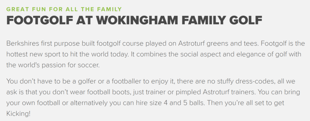 Wokingham RG40 3HG, WOODLEY groupFoot Golf⚽9 holes for £8.80⌚Friday Morning time TBAhttps://www.wokinghamfamilygolf.co.uk/