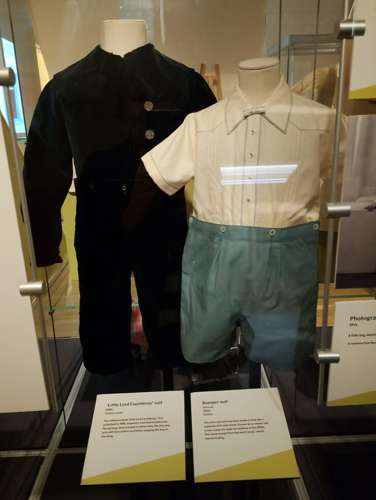 The exhibition showed how in the late 1700s/ early 1800s children’s clothing mimicked adult styles with subtle changes made to garments to allow for growing bodies and more active lives. Many outfits were often worn for special occasions, not the everyday.