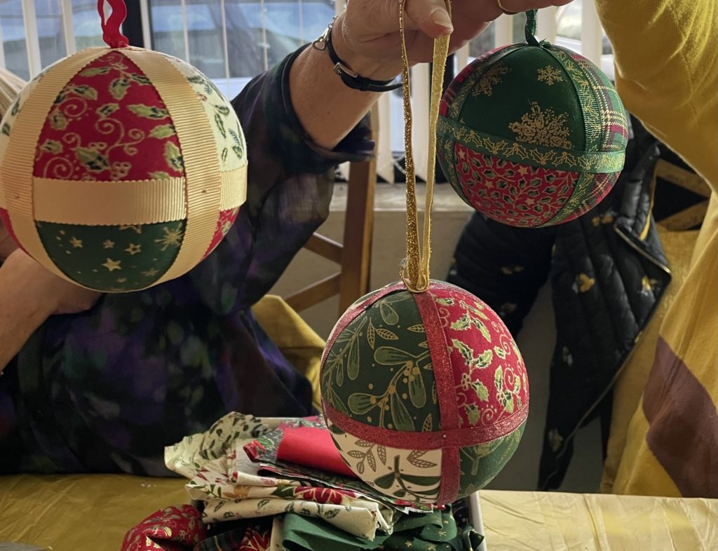 Some of our members enjoyed another two successful Simply Crafting days at Julie’s, this time making baubles for the Christmas Tree. They were a little hard to make to begin with, but with coffee, tea and mince pies, they seemed to get easier as the afternoon went on!