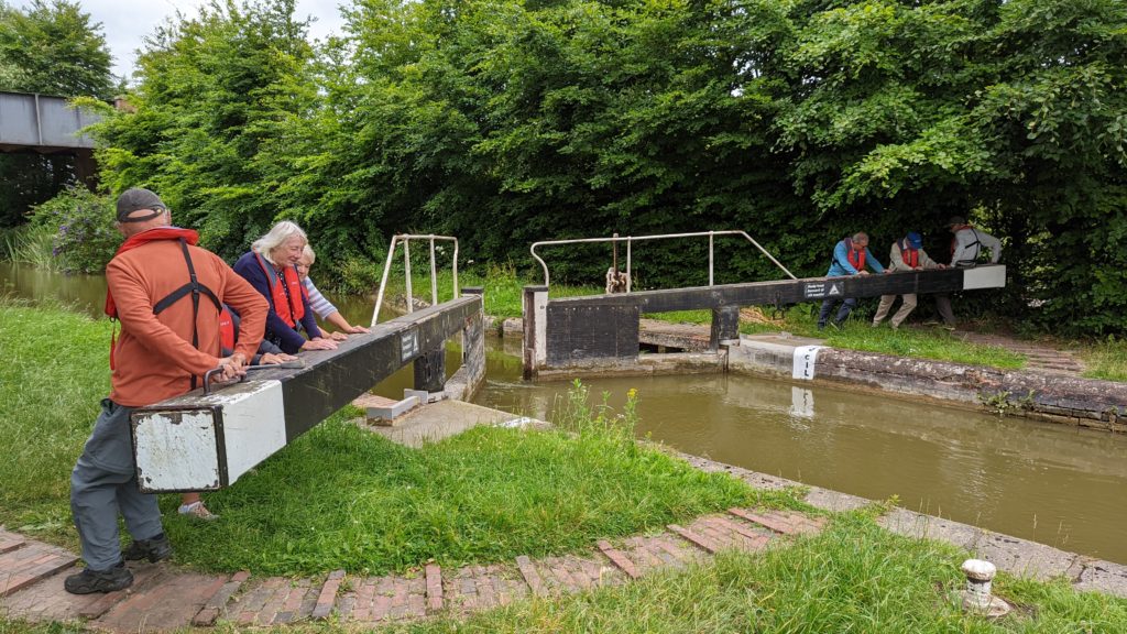 We are only a small group and not everyone wanted to come so as last time we invited our other halves. The boat was chartered with a professional skipper Julie who we met before on our last canal trip with the condition that we help out with the mooring and work the locks. So I managed the bow line and the rest of the crew as you can see from the photos did a sterling job working the locks.