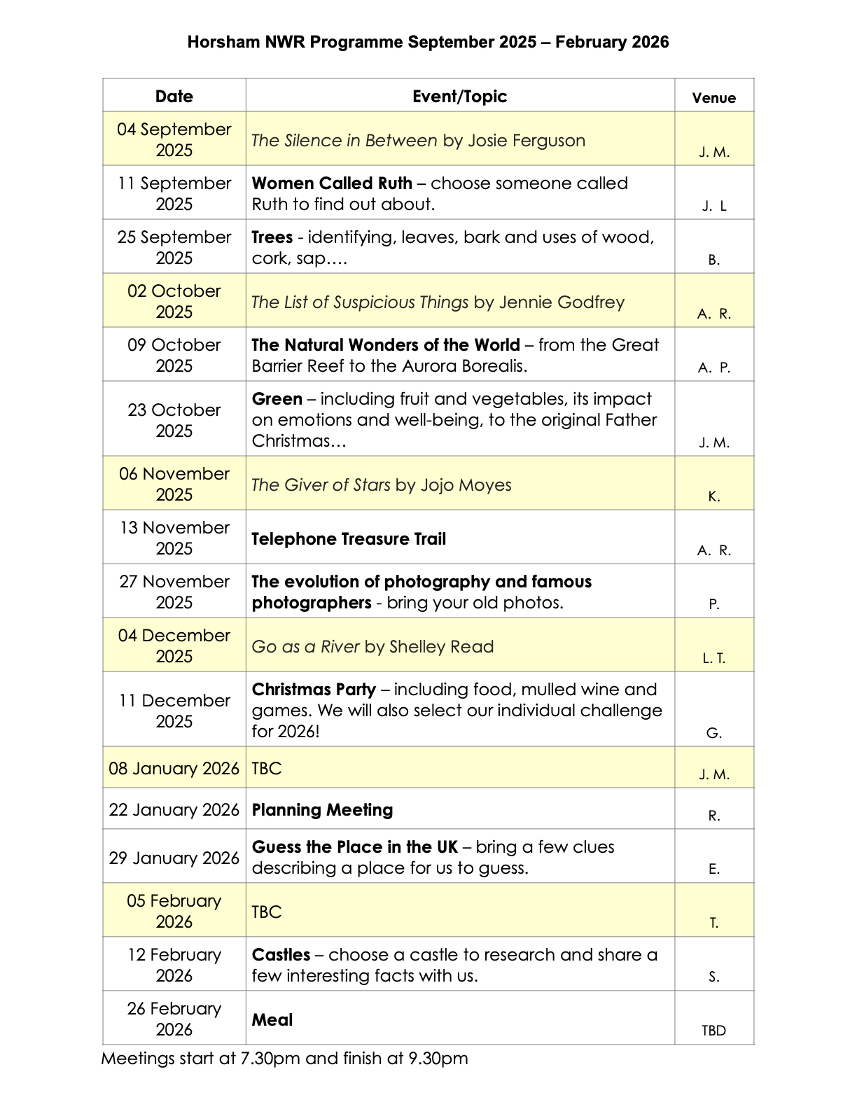 Programme Sep 2025-Feb 2026